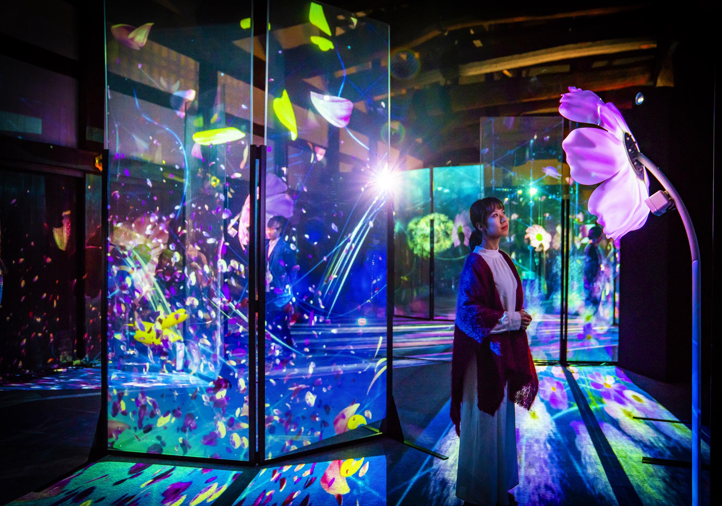 本展はこれまで通算30万人を動員し、Instagramでハッシュタグ「#flowersbynaked」の投稿数が 5 万件を記録した花のイマーシブイベント。今回関西で初となる世界遺産・二条城は、国宝・唐門や、重要文化財・二の丸御殿御清所など、城内の庭園、門、建造物の内部までを使って演出を施し、歴史的建築と京都の秋を満喫できるイベントとなっています。