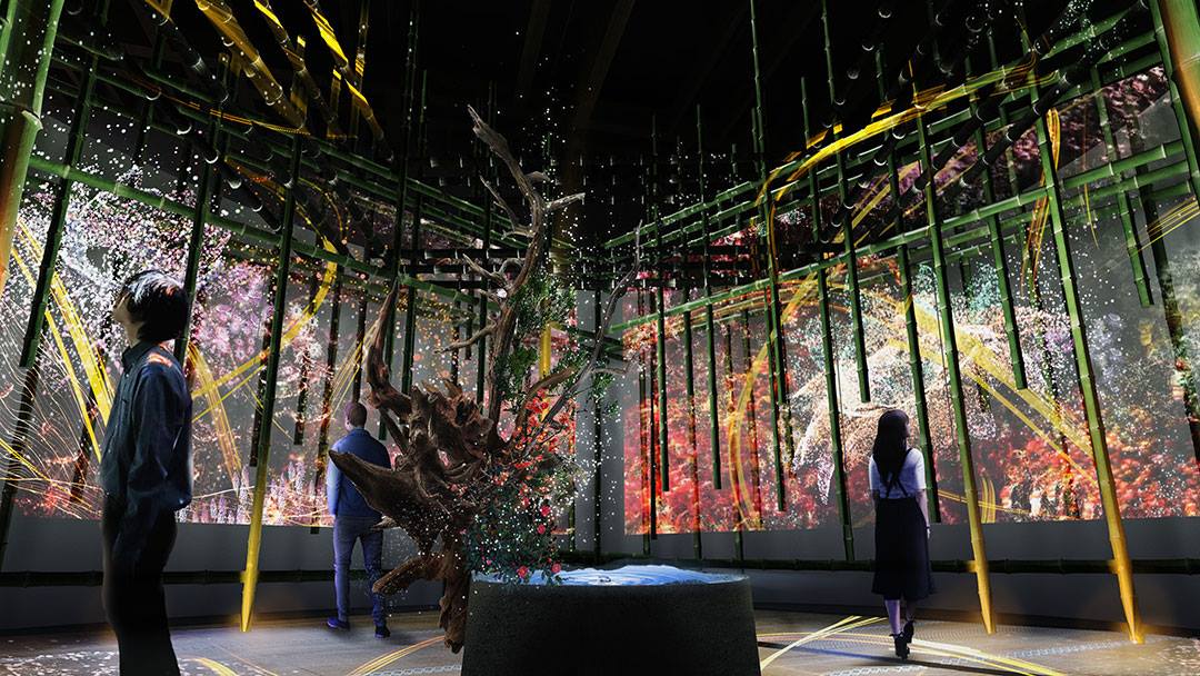 さらに、いけばな草月流家元・勅使河原茜のいけばなに先進技術を掛け合わせた「茶室 ー調心の間ー」や、志野流香道の次期家元 蜂谷宗苾氏監修の香りと空間演出を合わせた「和歌」をテーマにした作品「一人一首 〜古今の円窓〜」の伝統×革新のコラボなど、全12作品のうち9作品が今回初公開の新作です。