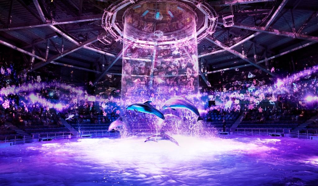 またメインエリアのザ スタジアムでは、イルカたちのパフォーマンスに合わせて、360度桜の花びらに包まれるプロジェクションマッピング演出、和楽器が奏でるリズムや日本音楽が繰り広げるオリジナル楽曲が融合する、春のナイトドルフィンパフォーマンスも開催(開催時間:毎日 19:00/20:30 ※各回15分間)。屋内で満開の桜吹雪とともに海の生きものたちと過ごす、新たなお花見体験を楽しめます。