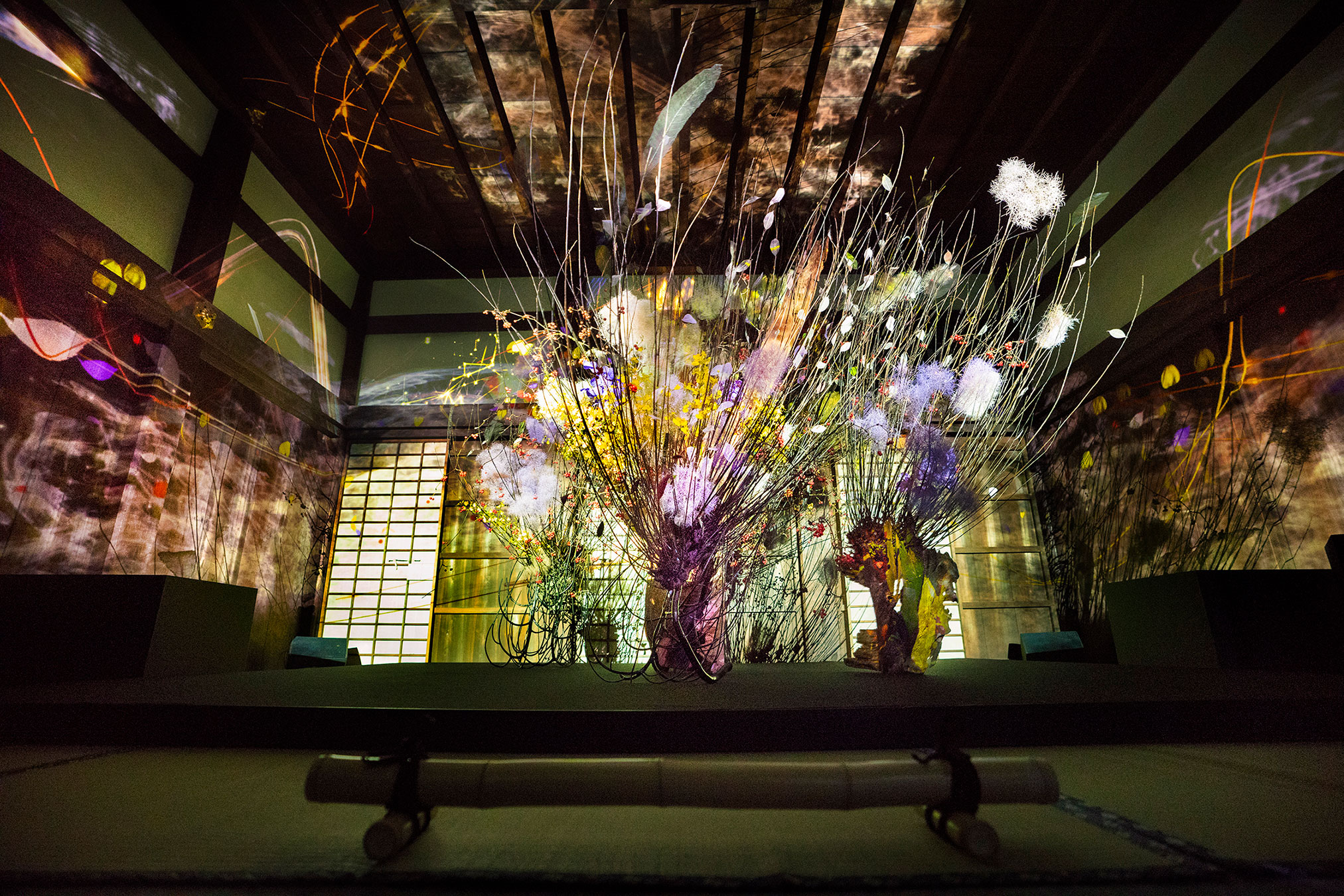 物語のクライマックスは、立体的な生け花とデジタルアートの新作コラボレーション。