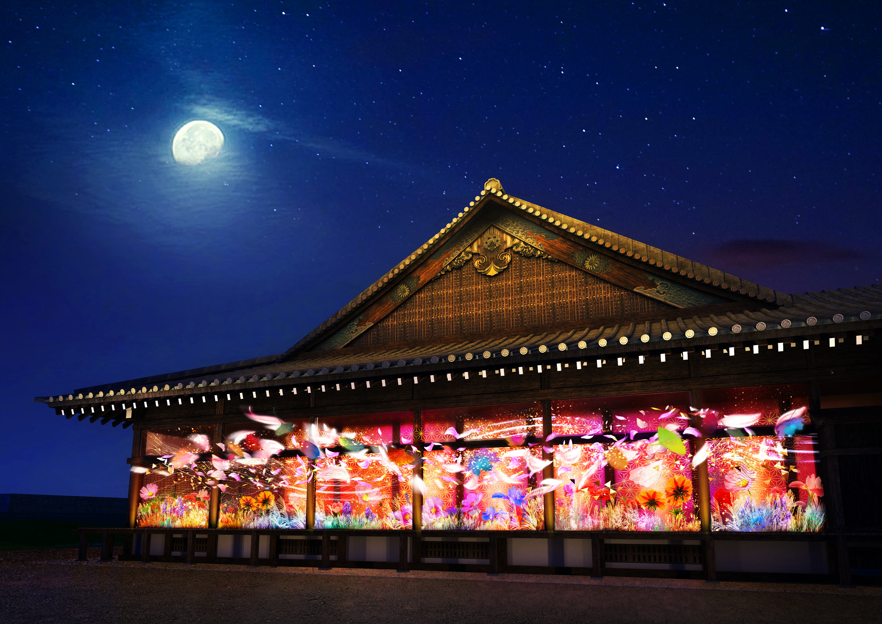2回目の開催となる今年は、二条城のユネスコ世界遺産登録(1994年)から25周年を迎えることを記念して行います。そのため、昨年より演出エリアを拡大し、スケールアップ。世界初となる屋内外で「FLOWERS BY NAKED」の世界を体感していただけます。