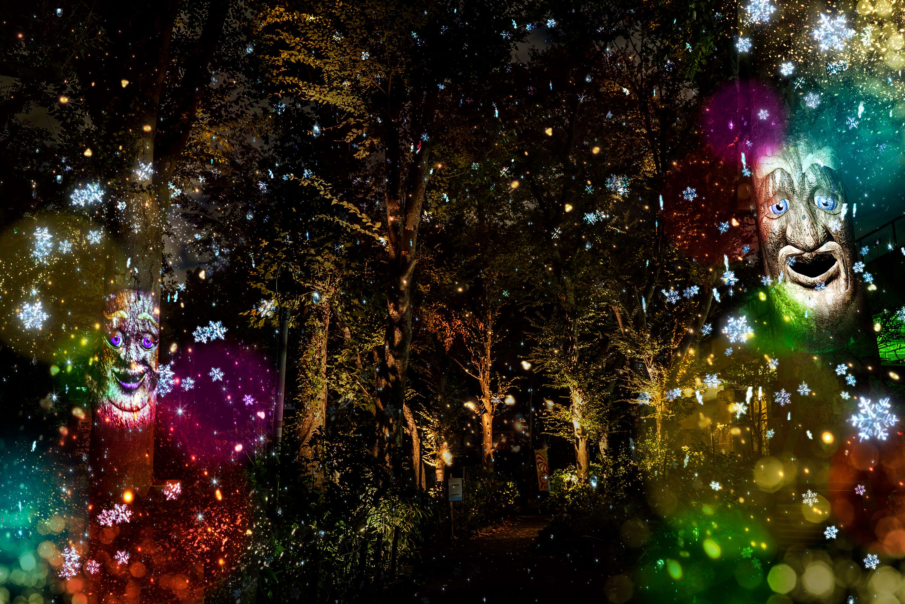 今夏ナイトプールで上映した、プロジェクションマッピングで魅せる没入型ミュージカルショー「としまえん×ネイキッドのマジカル・ナイト・ミュージカル -幻の黄金郷エルドラド-」を、イルミネーションが輝くとしまえんのそれいゆ広場にて上映いたします。夏に引き続き、としまえんの公式キャラクターのエルちゃん・カルちゃんとおばけたちが出演し、ショーを盛り上げます。また冬限定の演出として、それいゆ広場には雪の結晶がキラキラと降り注ぎ、としまえんの夜空を幻想的に彩ります。