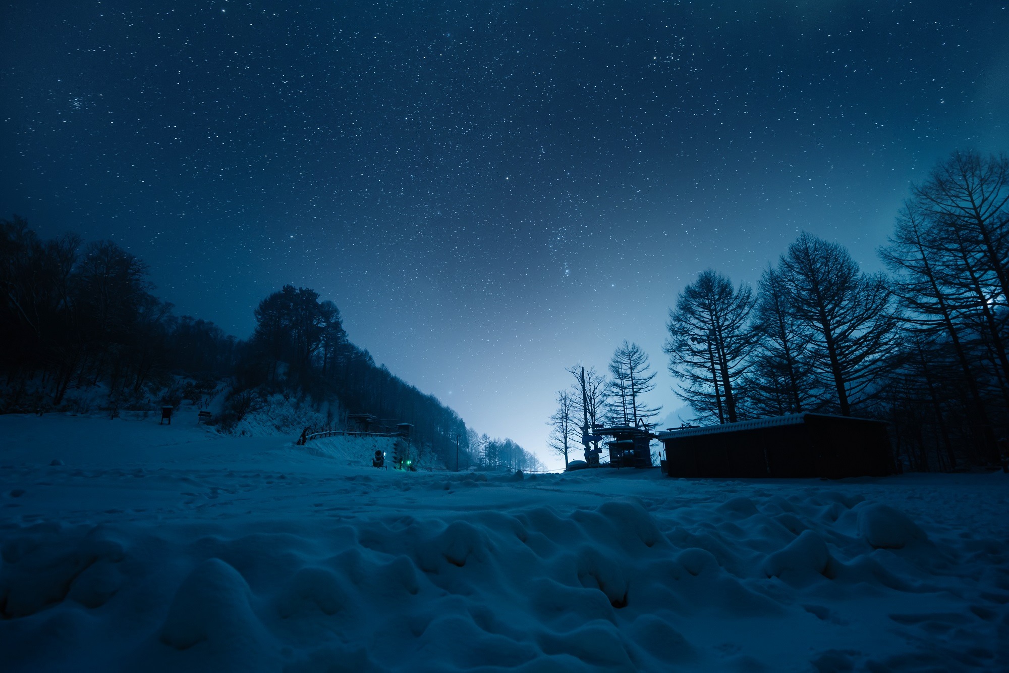 そんなゴンドラで標高1,400mの高さまでのぼり山頂に到着すると、目の前は銀世界。澄んだ夜空には、日本一の星空が一面に広がります。