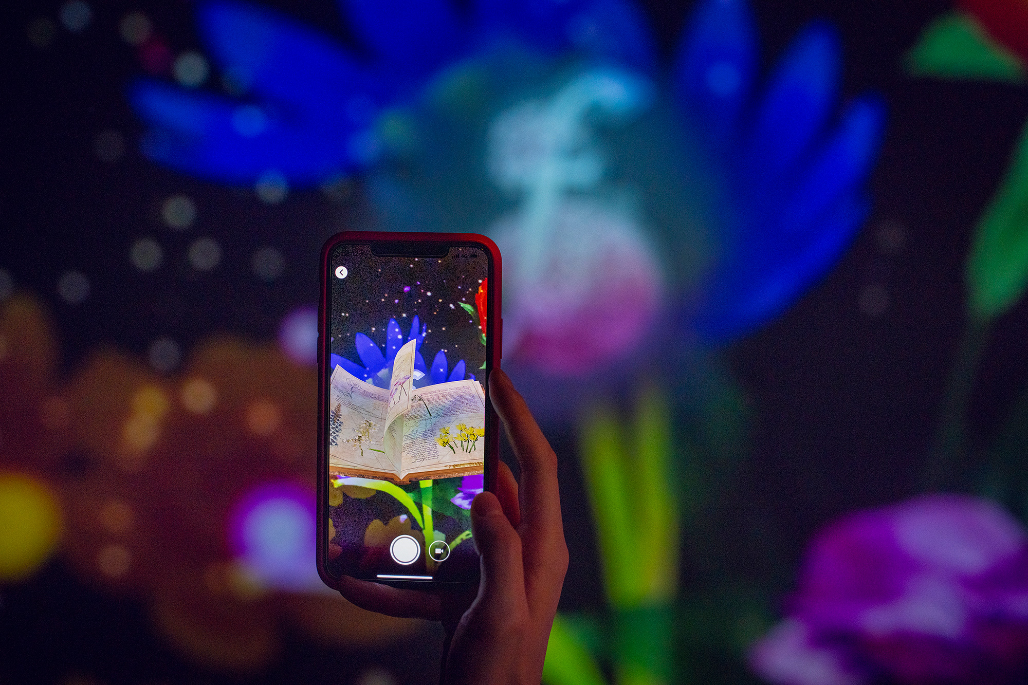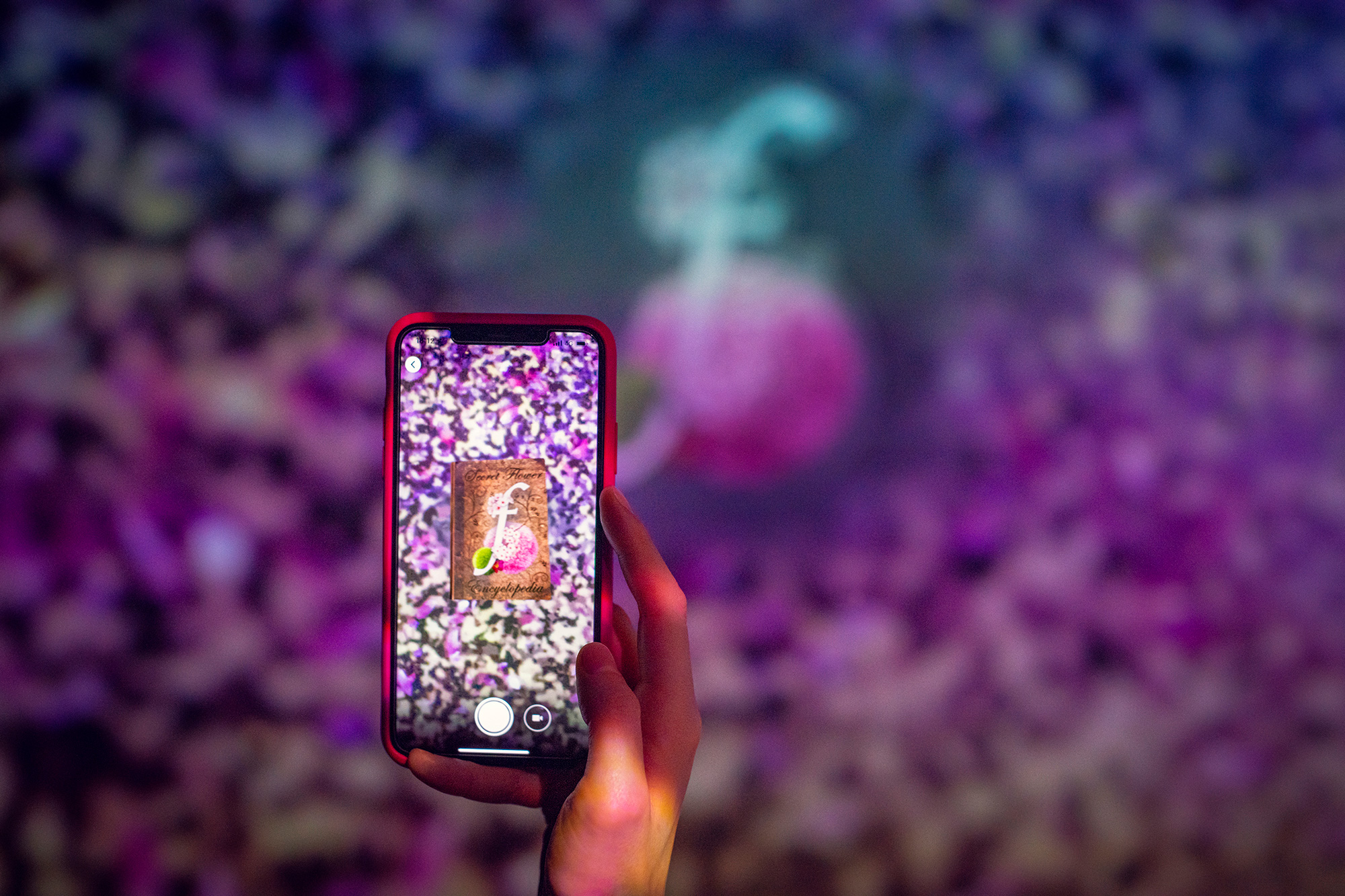 会場内にある「F」「L」「O」「W」「E」「R」「S」を探して、ネイキッド公式アプリのカメラで各アルファベットをかざすと、FLOWERS BY NAKEDの世界を彩る花たちが現れる。7つ全ての文字を探して、秘密の花図鑑をコンプリートするスタンプラリーAR。
